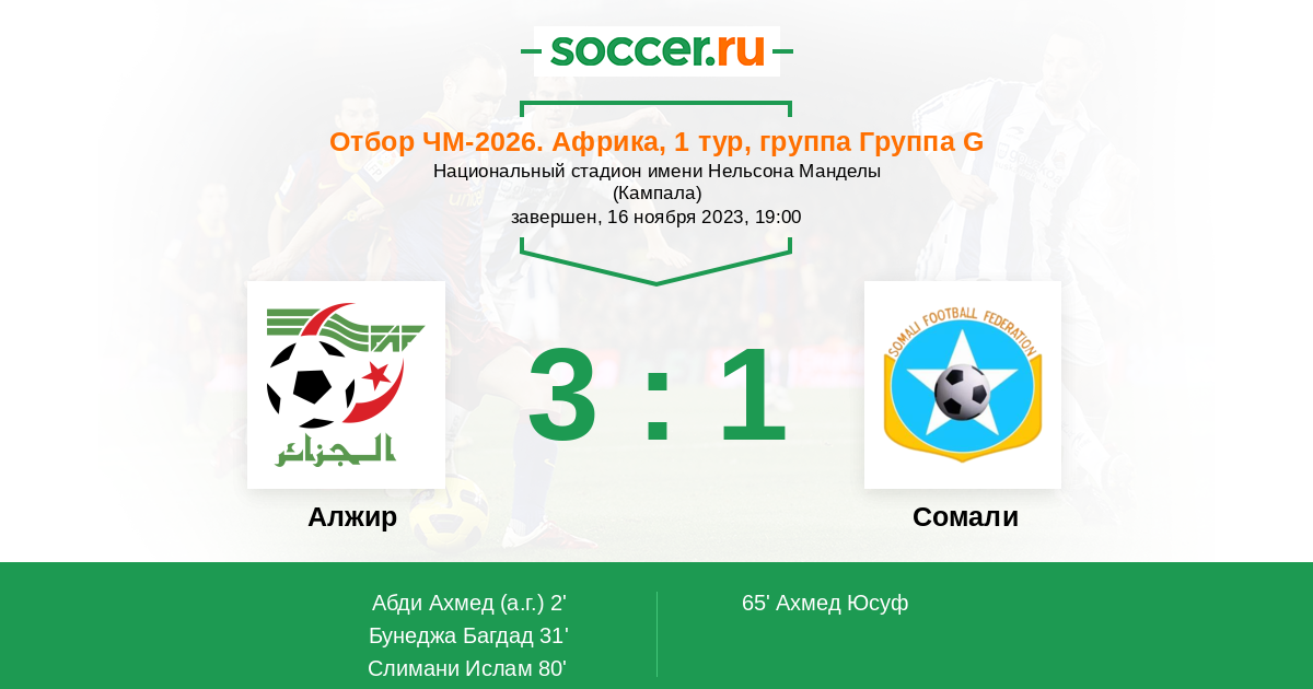 Протокол матча Алжир против Сомали