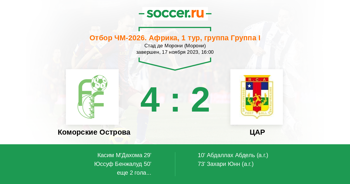 Протокол матча Коморские Острова против ЦАР