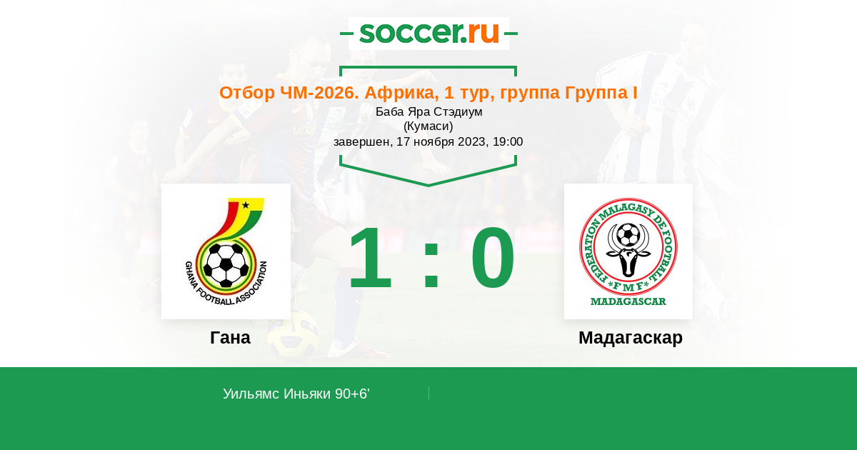 Протокол матча Гана против Мадагаскар