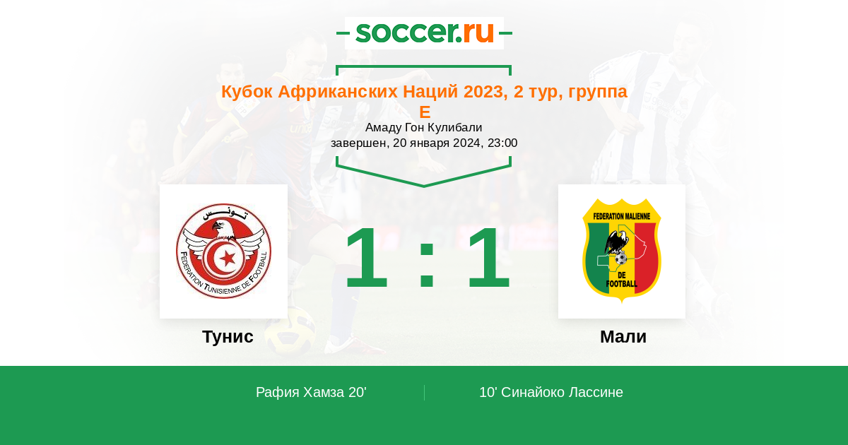 Тунис - Мали ! Сборную Мали по большому счёту устроит в этом матче и ничья . Тунису тоже ошибаться крайне не желательно . Предположу , что матч пройдёт в аккуратной манере . ТМ.