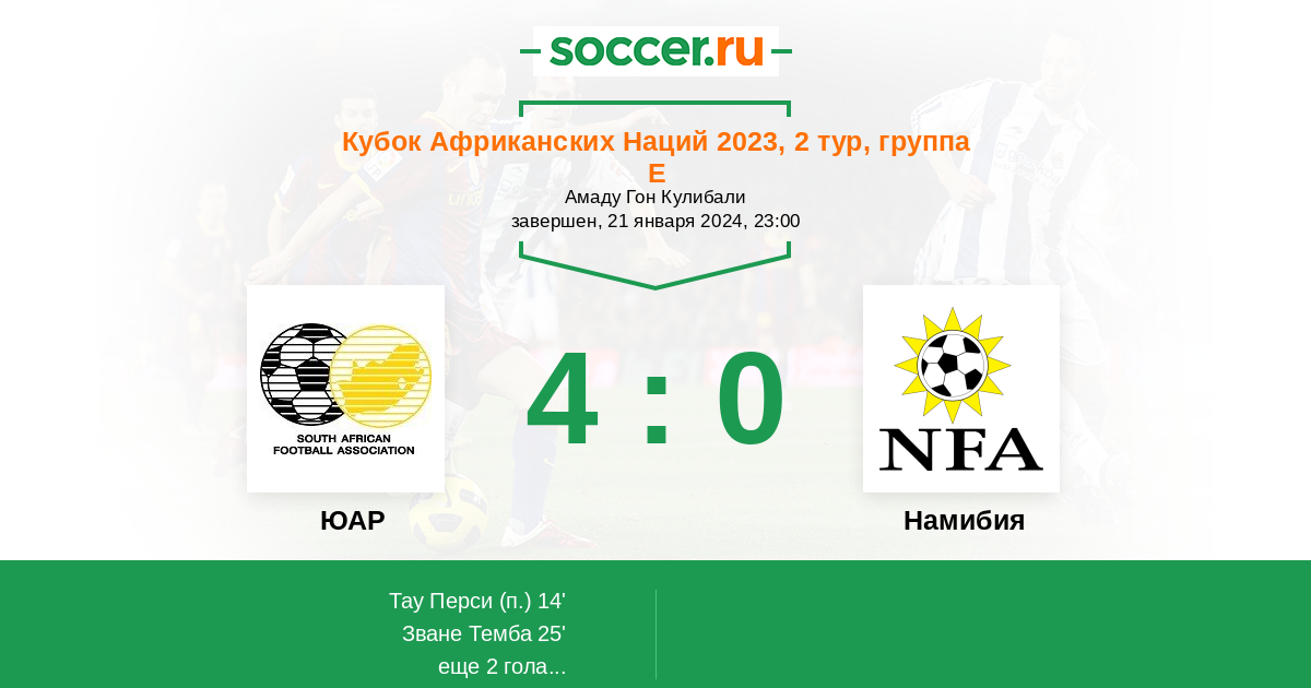 Протокол матча ЮАР против Намибия