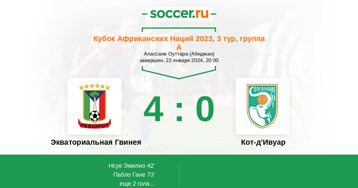 Протокол матча Экваториальная Гвинея против Кот-д'Ивуар