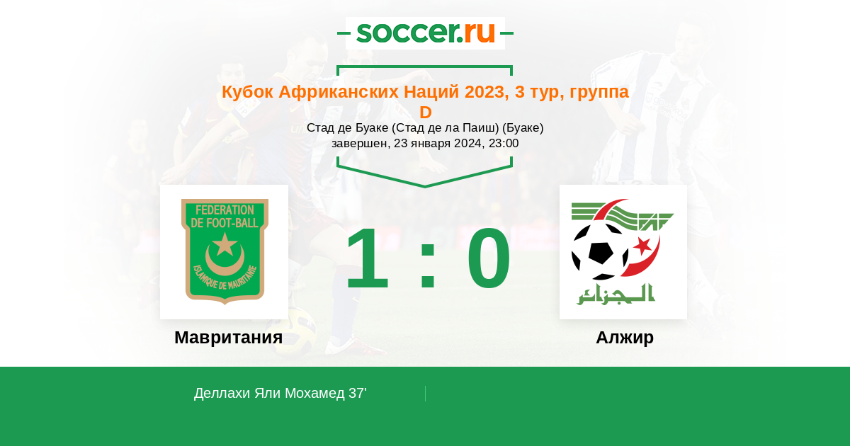 В предстоящем матче 3 - го тура Кубка Африканских Наций в группе Д между сборной Мавритании и сборной Алжира , фаворитом на победу является команда сборной Алжира, один матч хотя бы надо то выиграть.