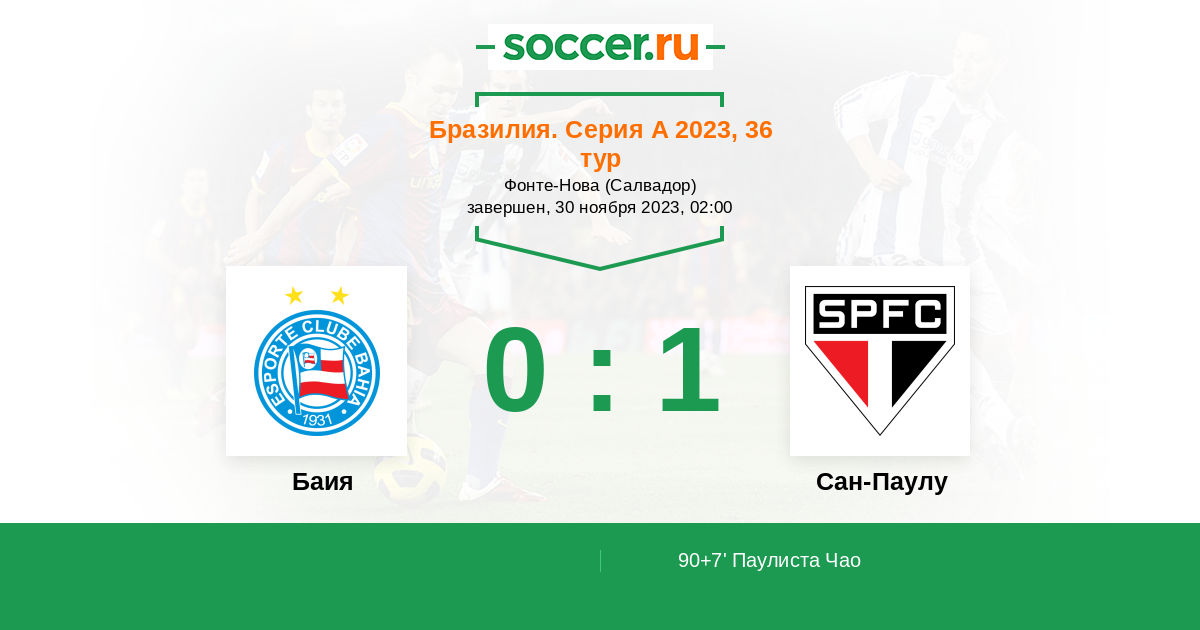 Протокол матча Баия против Сан-Паулу