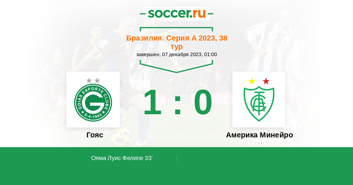 Протокол матча Гояс против Америка Минейро