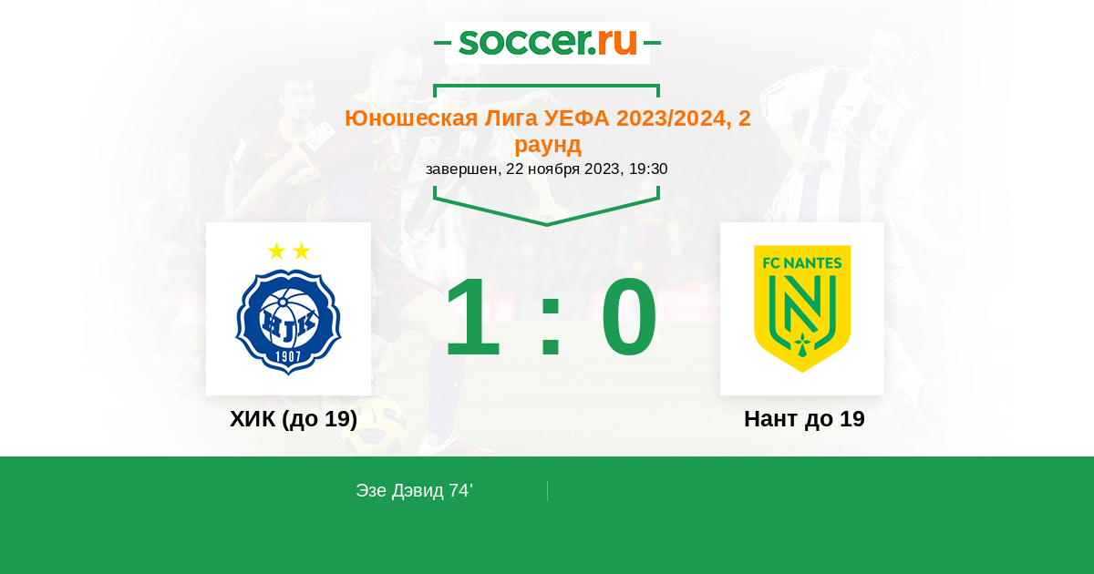Протокол матча ХИК (до 19) против Нант до 19