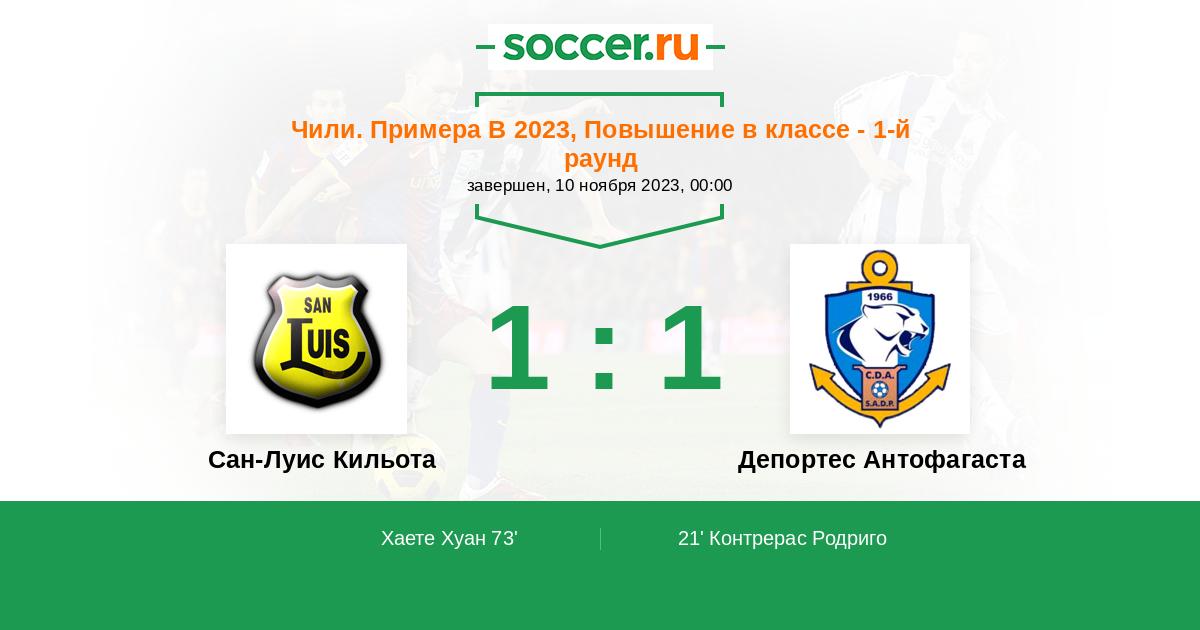 Протокол матча Сан-Луис Кильота против Депортес Антофагаста