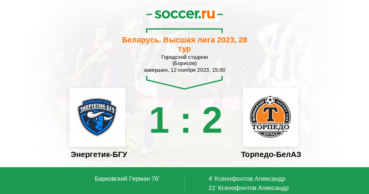 Протокол матча Энергетик-БГУ против Торпедо-БелАЗ