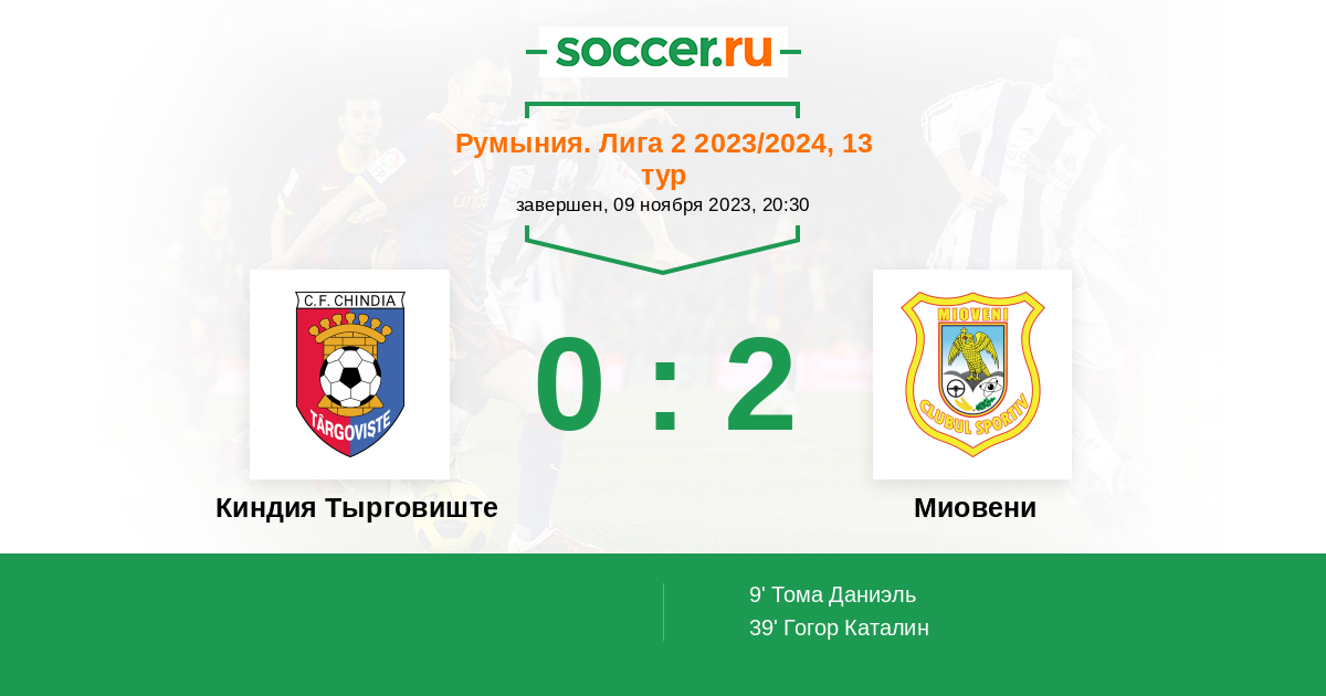 Протокол матча Киндия Тырговиште против Миовени