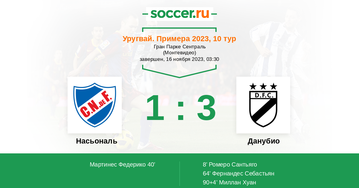 Протокол матча Насьональ против Данубио