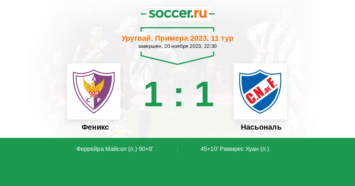 Протокол матча Феникс против Насьональ