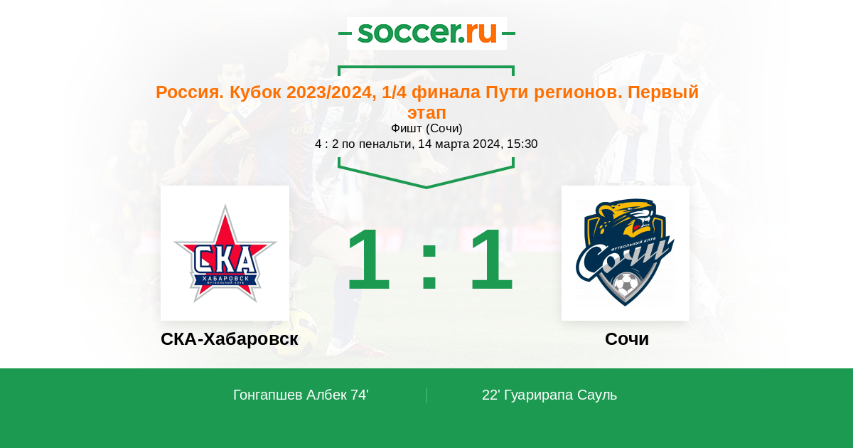Протокол матча СКА-Хабаровск против Сочи