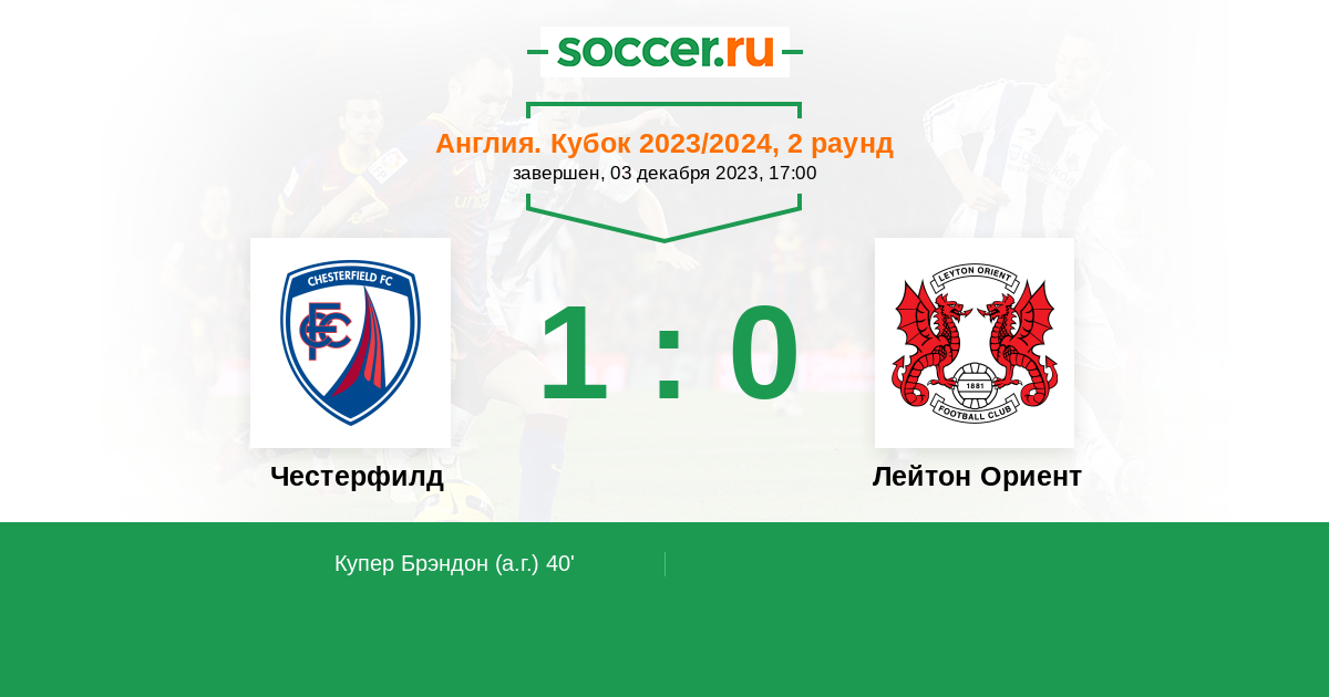 Протокол матча Честерфилд против Лейтон Ориент