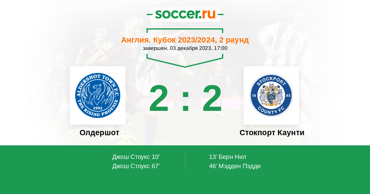 Протокол матча Олдершот против Стокпорт Каунти