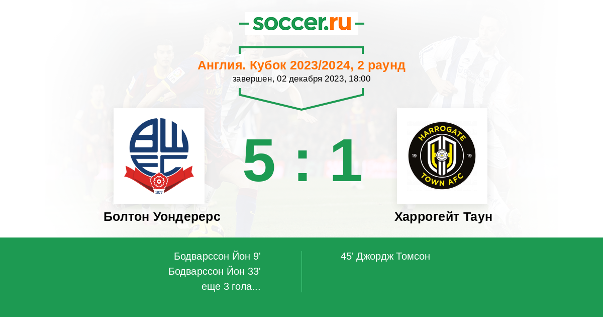 Протокол матча Болтон Уондерерс против Харрогейт Таун