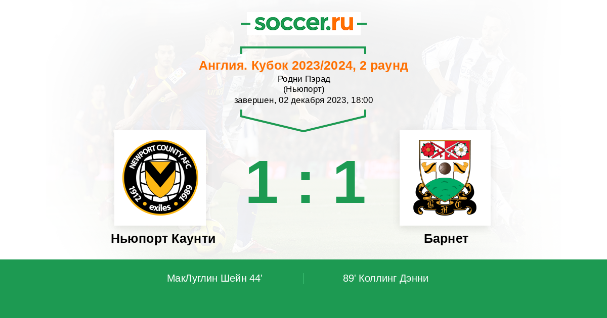 Протокол матча Ньюпорт Каунти против Барнет