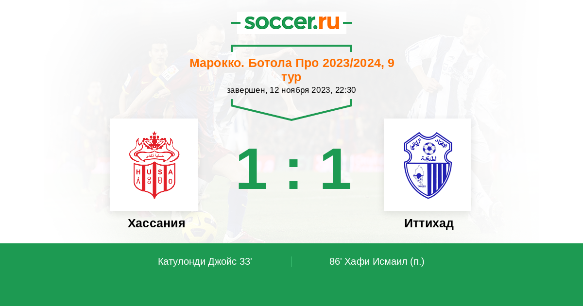 Протокол матча Хассания против ИР Анже