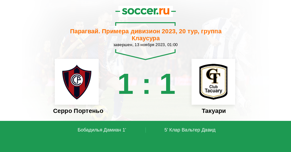 Протокол матча Серро Портеньо против Такуари