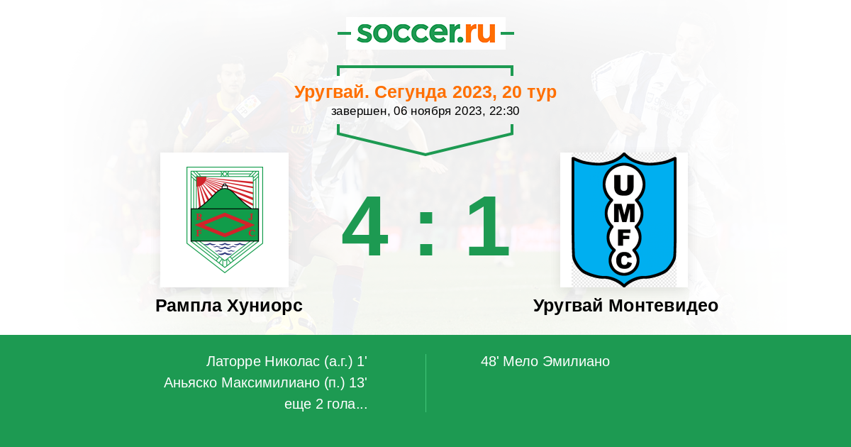 Протокол матча Рампла Хуниорс против Уругвай Монтевидео