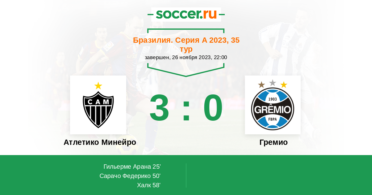Протокол матча Атлетико Минейро против Гремио