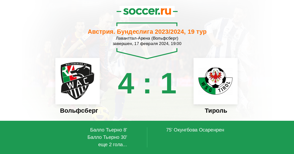 Протокол матча Вольфсберг против Тироль