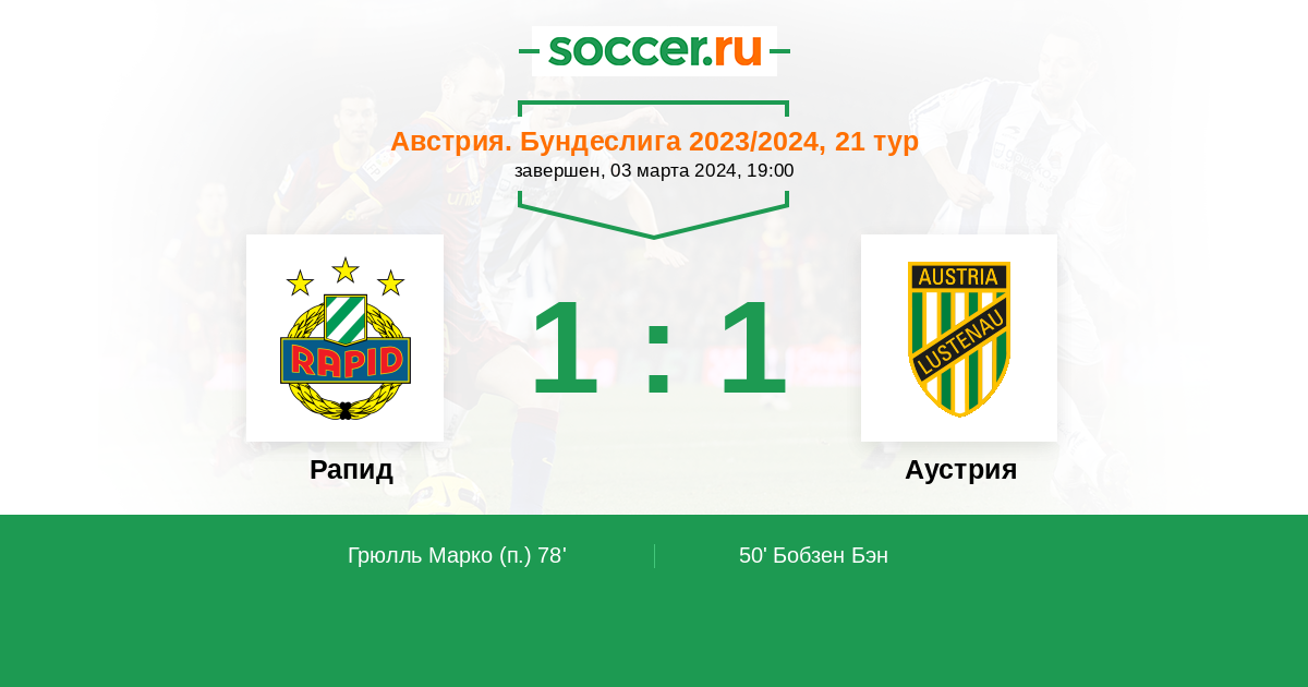 Протокол матча Рапид против Аустрия