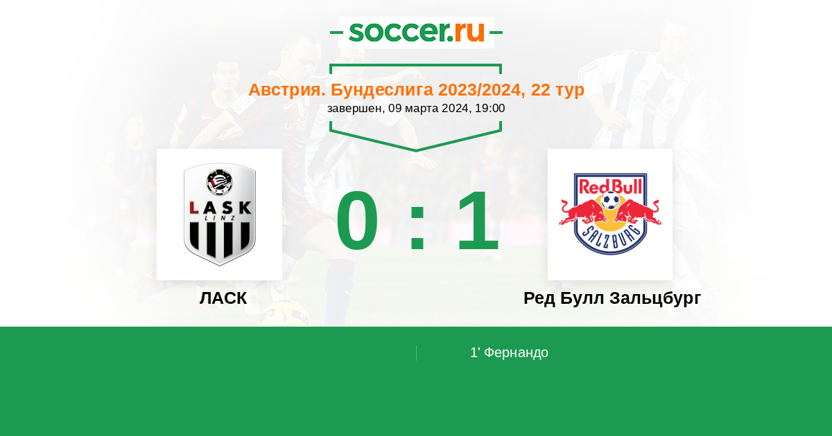 Протокол матча ЛАСК против Ред Булл Зальцбург