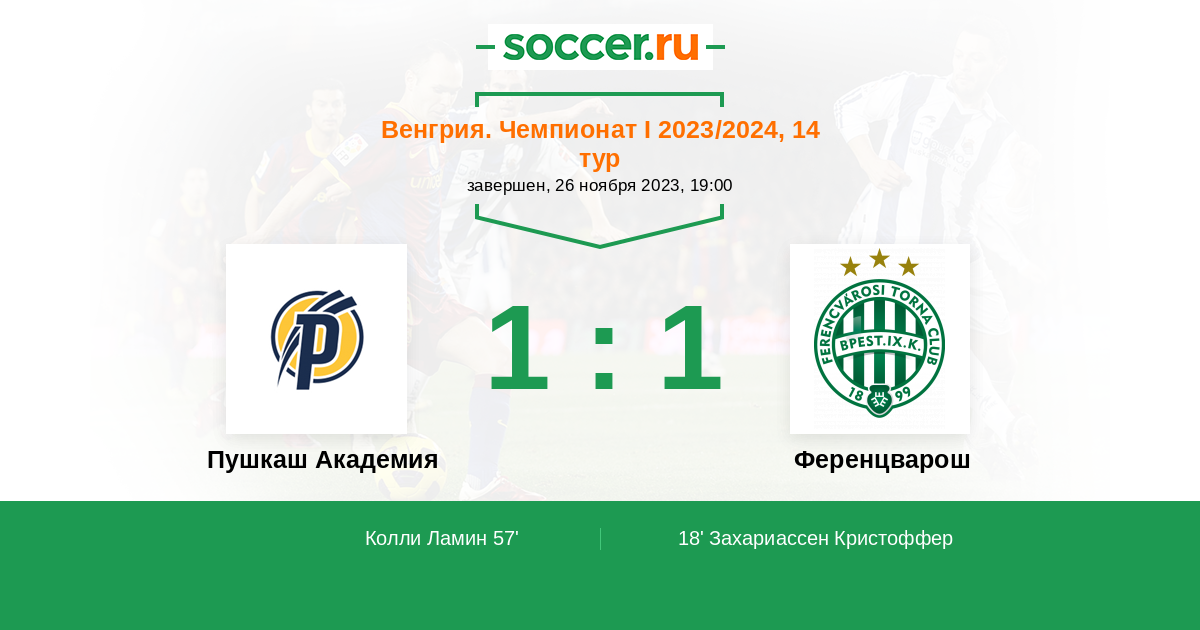 Протокол матча Пушкаш Академия против Ференцварош