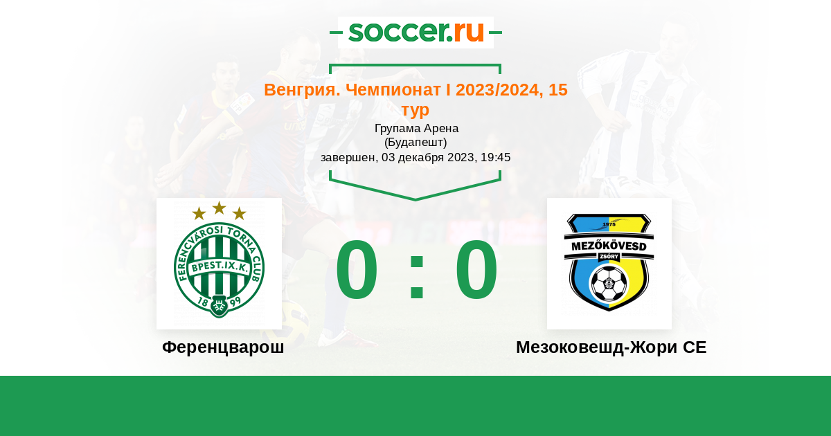 Протокол матча Ференцварош против Мезоковешд-Жори СЕ