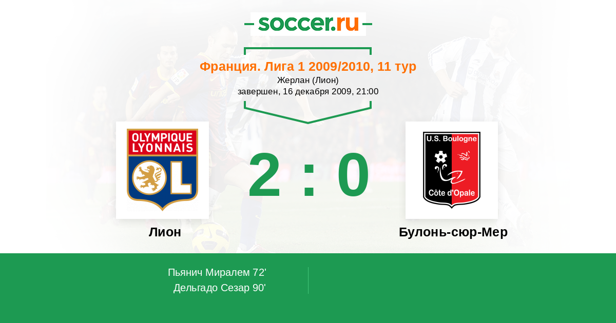 Протокол матча Лион против Булонь-сюр-Мер