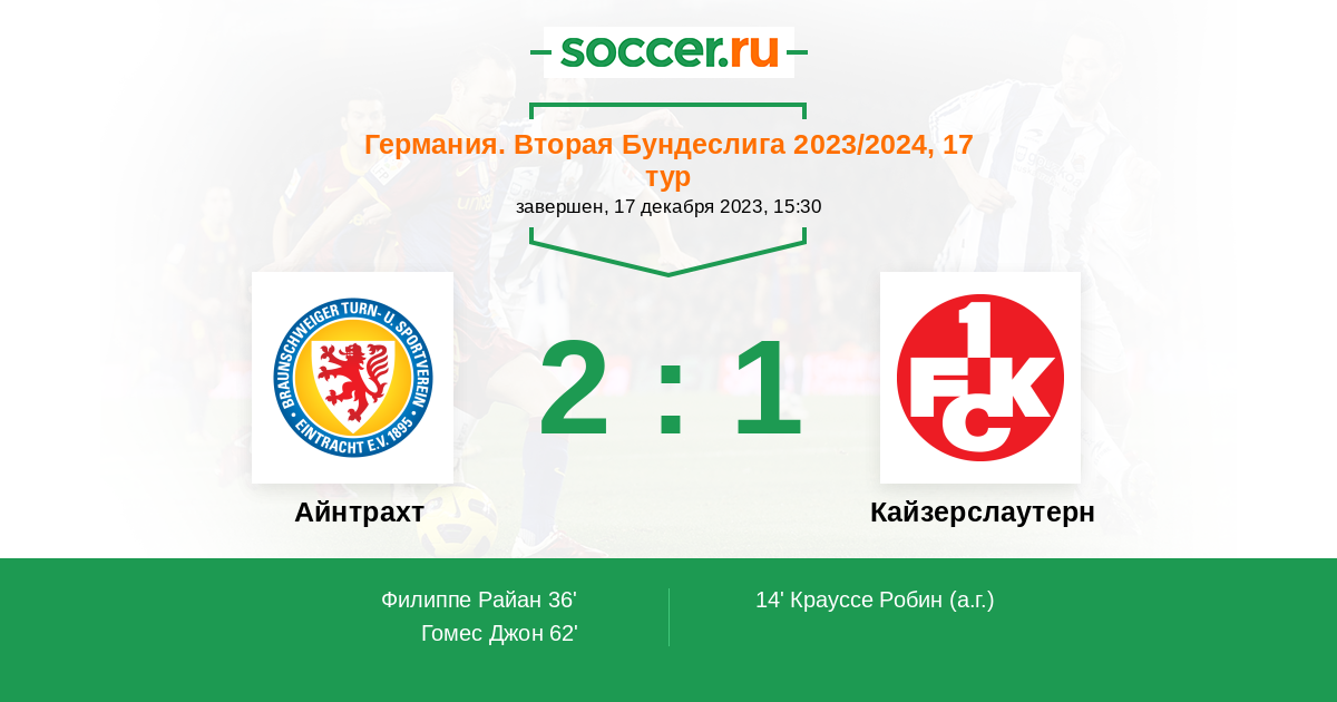 Протокол матча Айнтрахт против Кайзерслаутерн