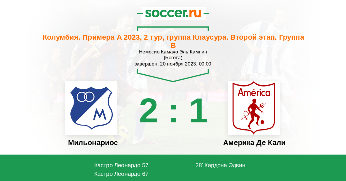 57' (1:1) Кастро Леонардо (23) (Бертель Омар (3))