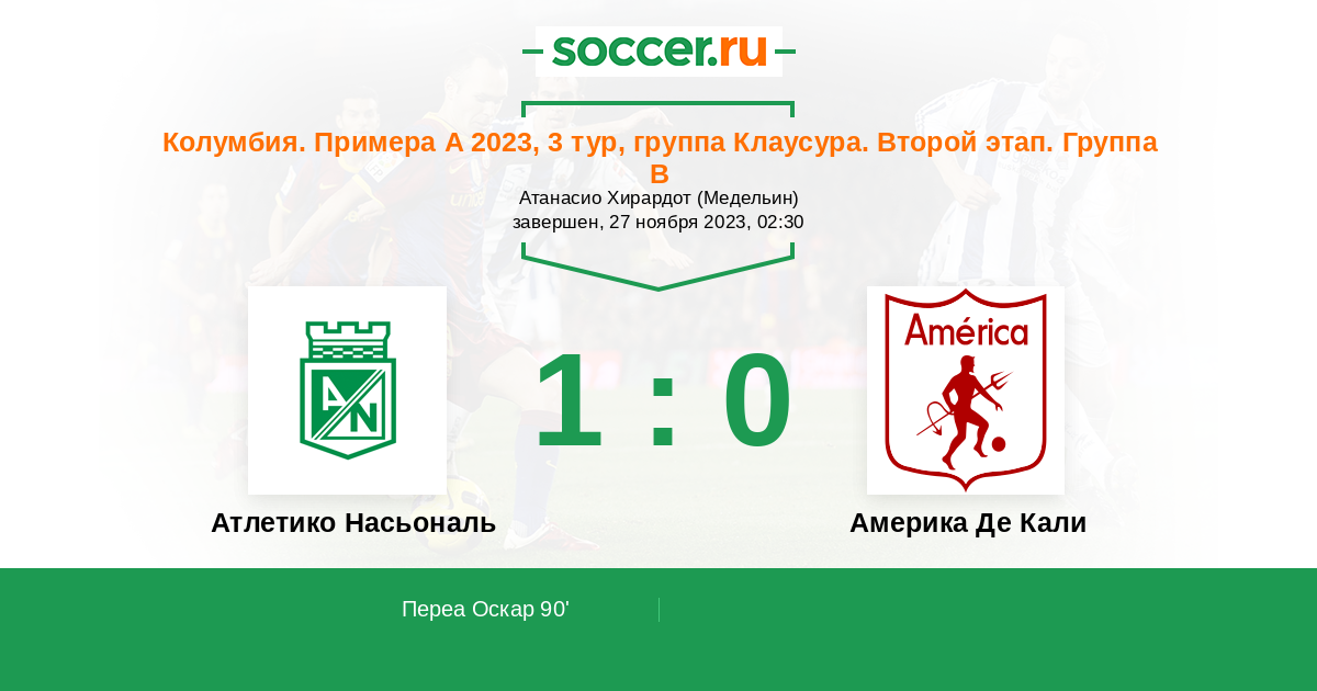 Протокол матча Атлетико Насьональ против Америка Де Кали