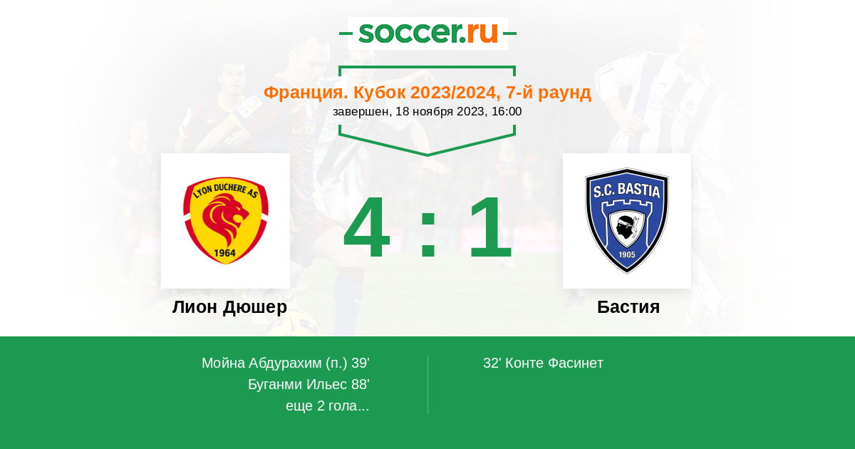 Протокол матча Лион Дюшер против Бастия