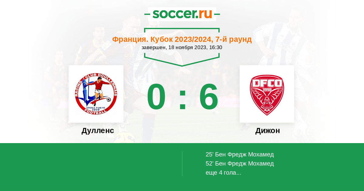 Протокол матча Дулленс против Дижон