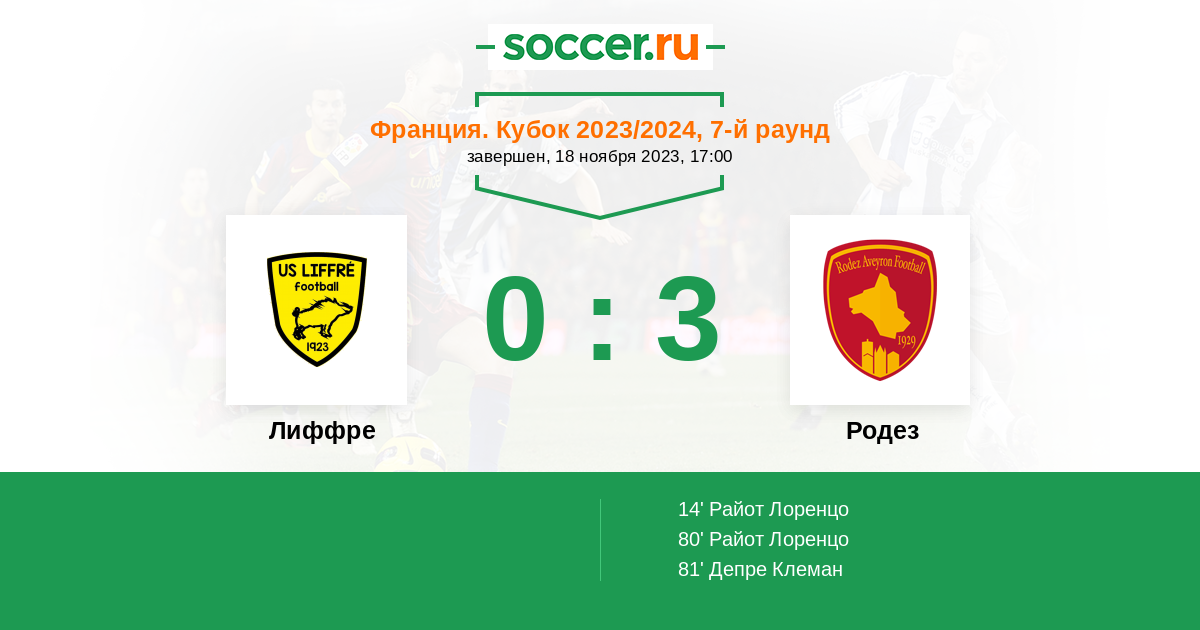 Протокол матча Лиффре против Родез