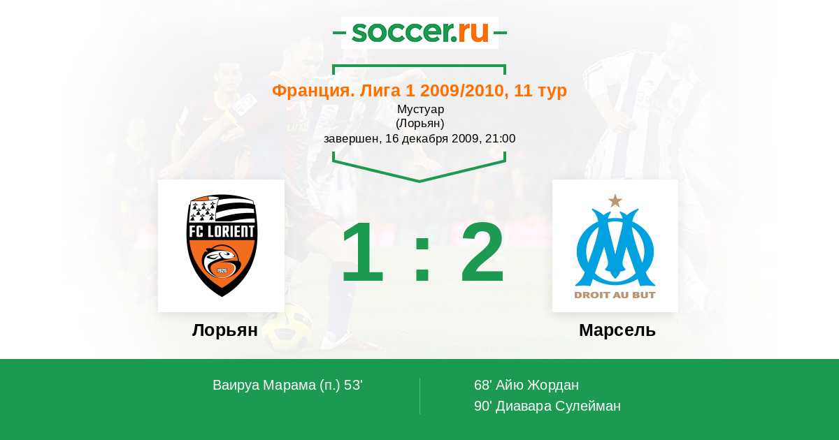 Протокол матча Лорьян против Марсель