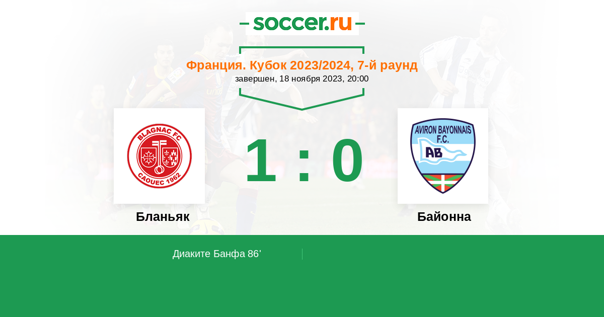 Протокол матча Бланьяк против Байонна