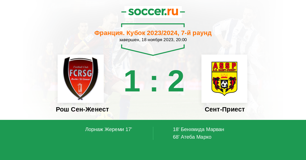 Протокол матча Рош Сен-Женест против Сент-Приест