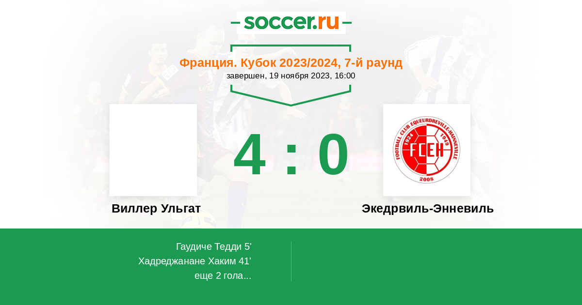 Протокол матча Виллер Ульгат против Экедрвиль-Энневиль
