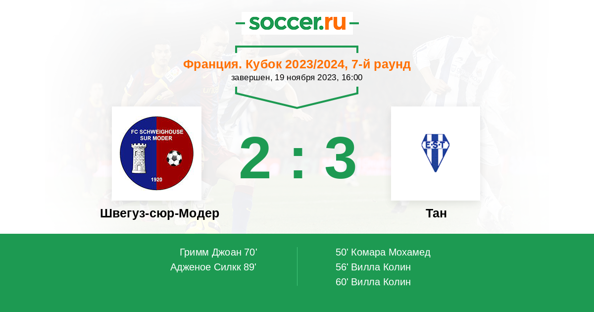 Протокол матча Швегуз-сюр-Модер против Тан