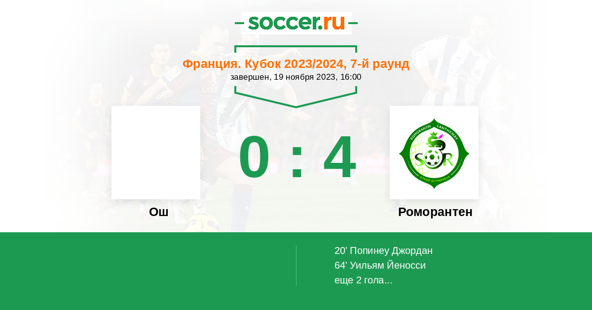 Протокол матча Ош против Роморантен