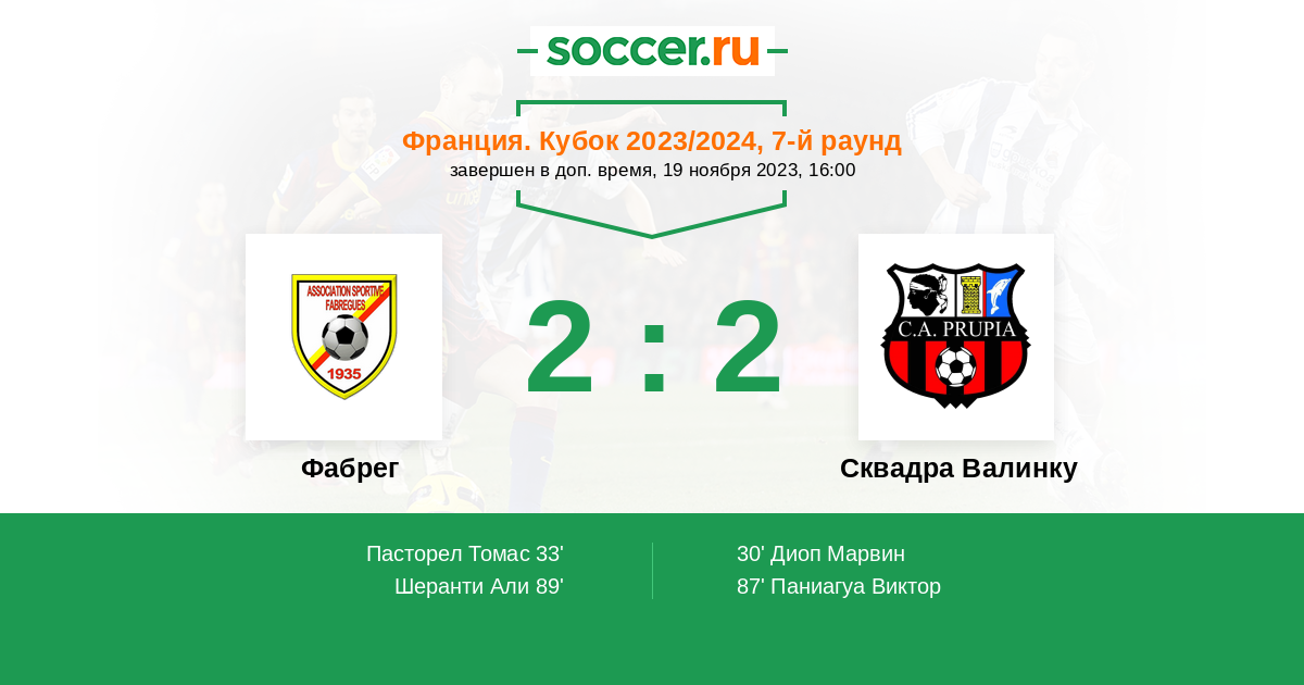Протокол матча Фабрег против Сквадра Валинку