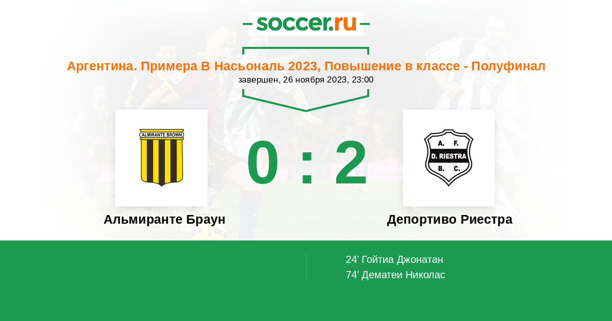 Протокол матча Альмиранте Браун против Депортиво Риестра