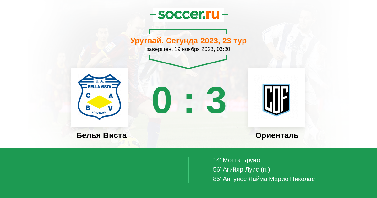 Протокол матча Белья Виста против Ориенталь