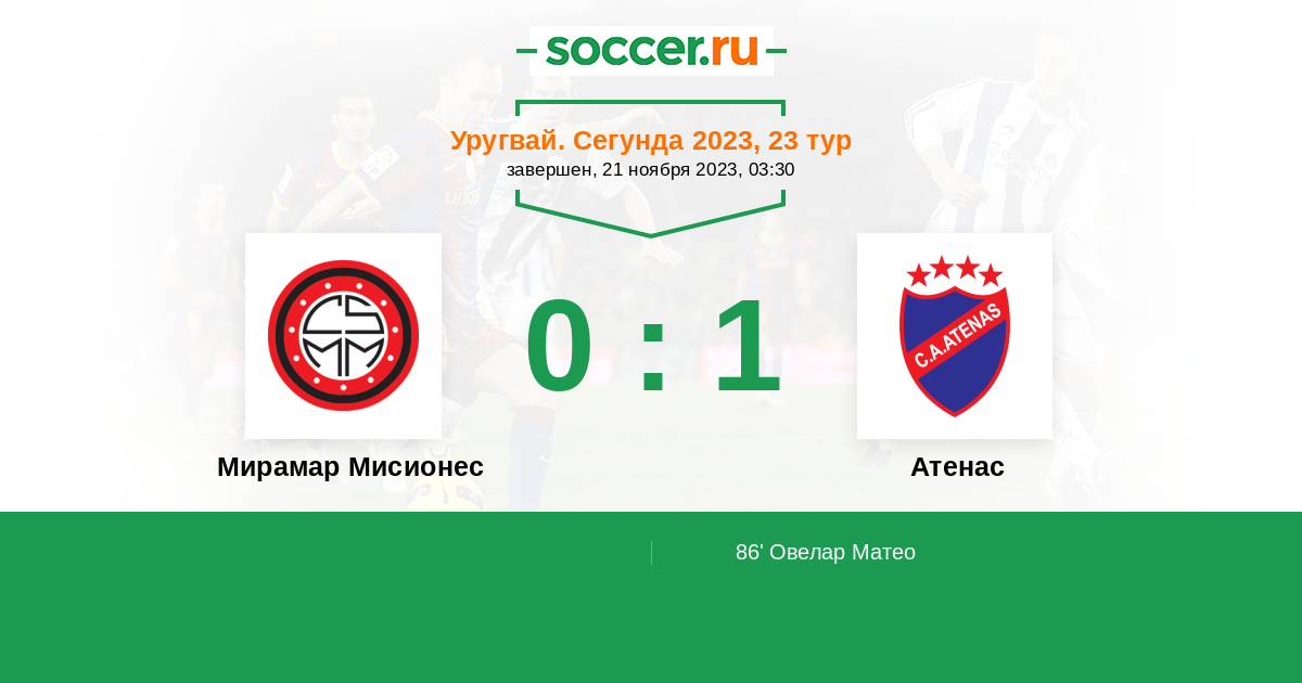 Протокол матча Мирамар Мисионес против Атенас