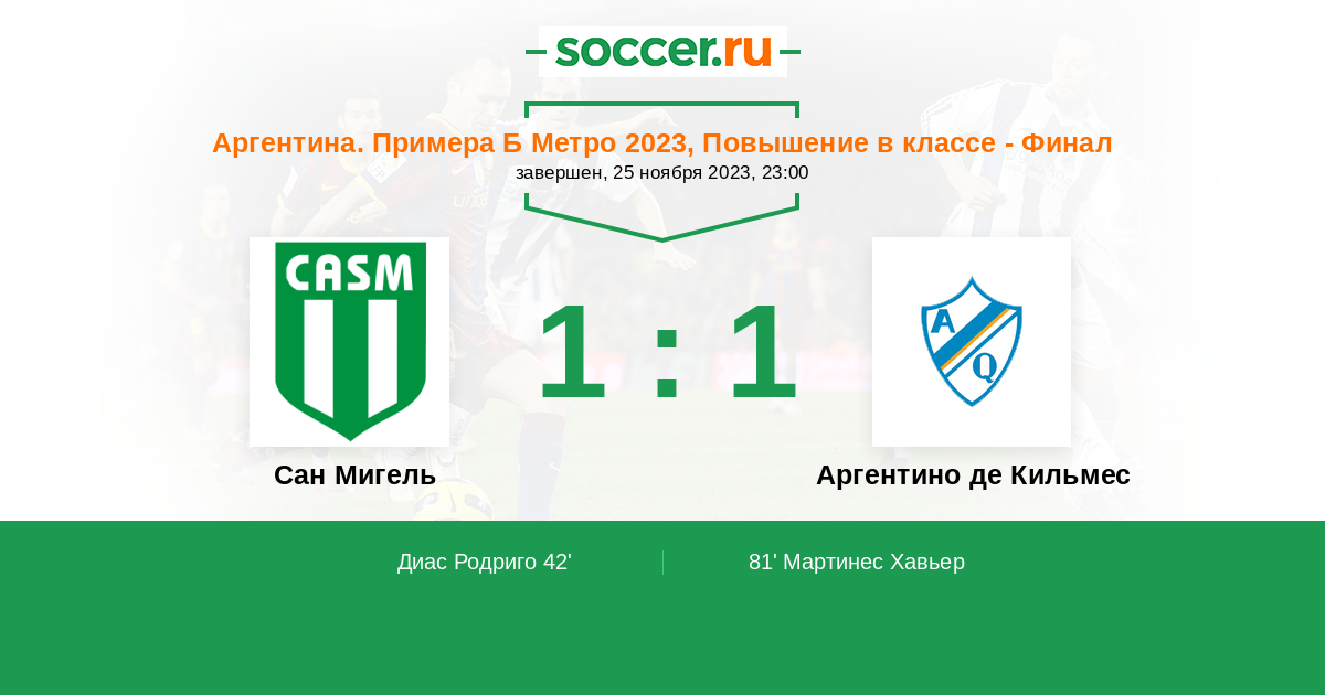 Протокол матча Сан Мигель против Аргентино де Кильмес