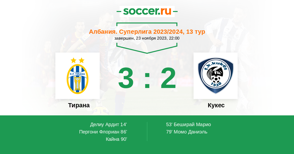 Протокол матча Тирана против Кукес