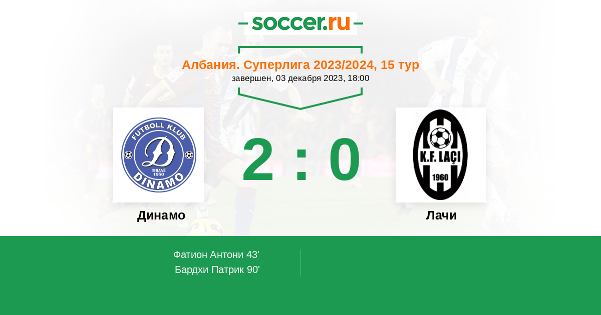 Протокол матча Динамо Сити против Лачи