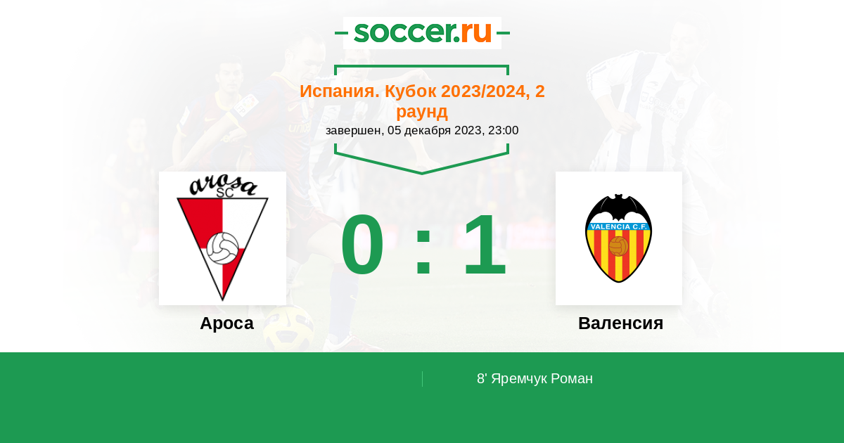 Протокол матча Ароса против Валенсия
